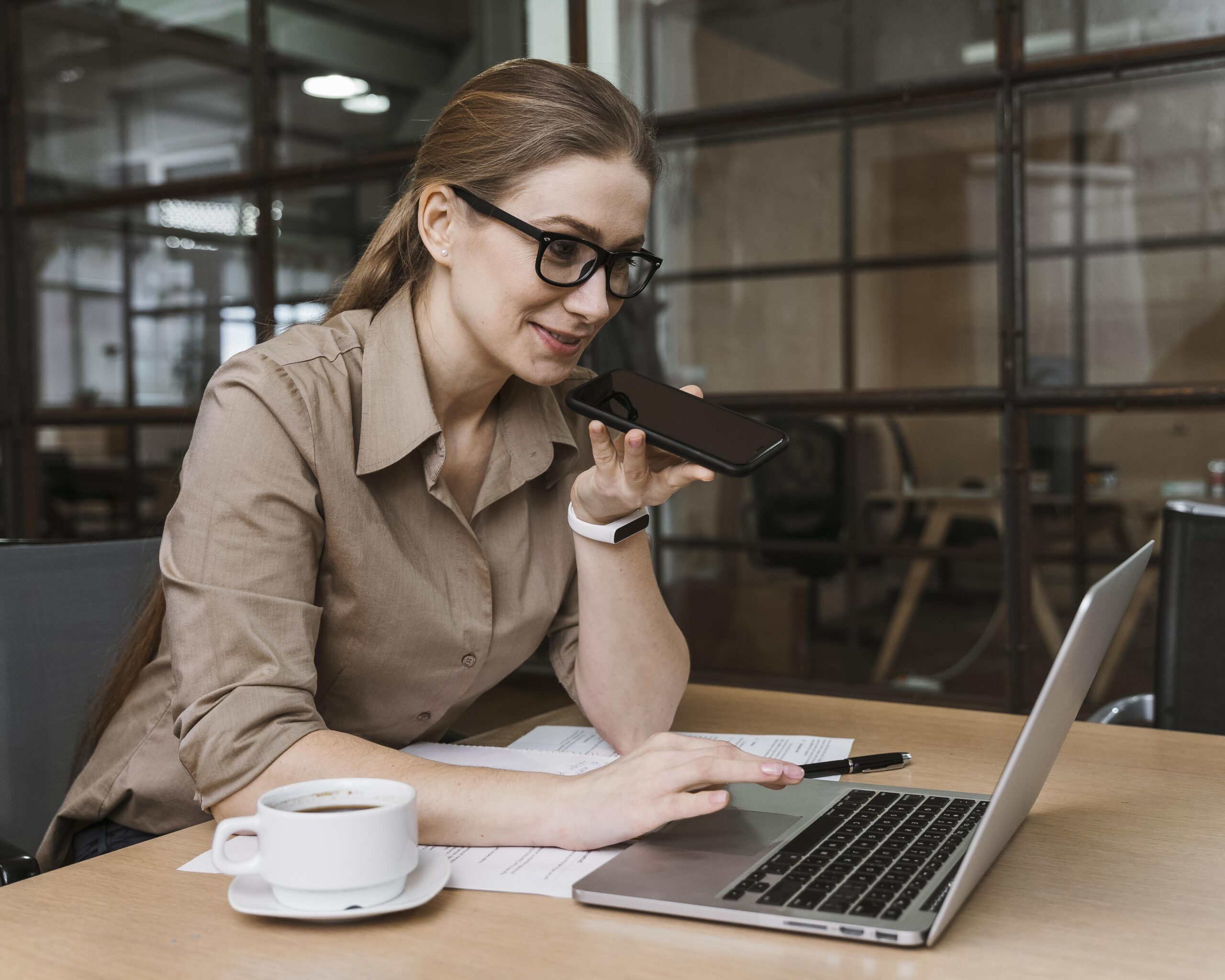 side-view-young-businesswoman-talking-phone-meeting