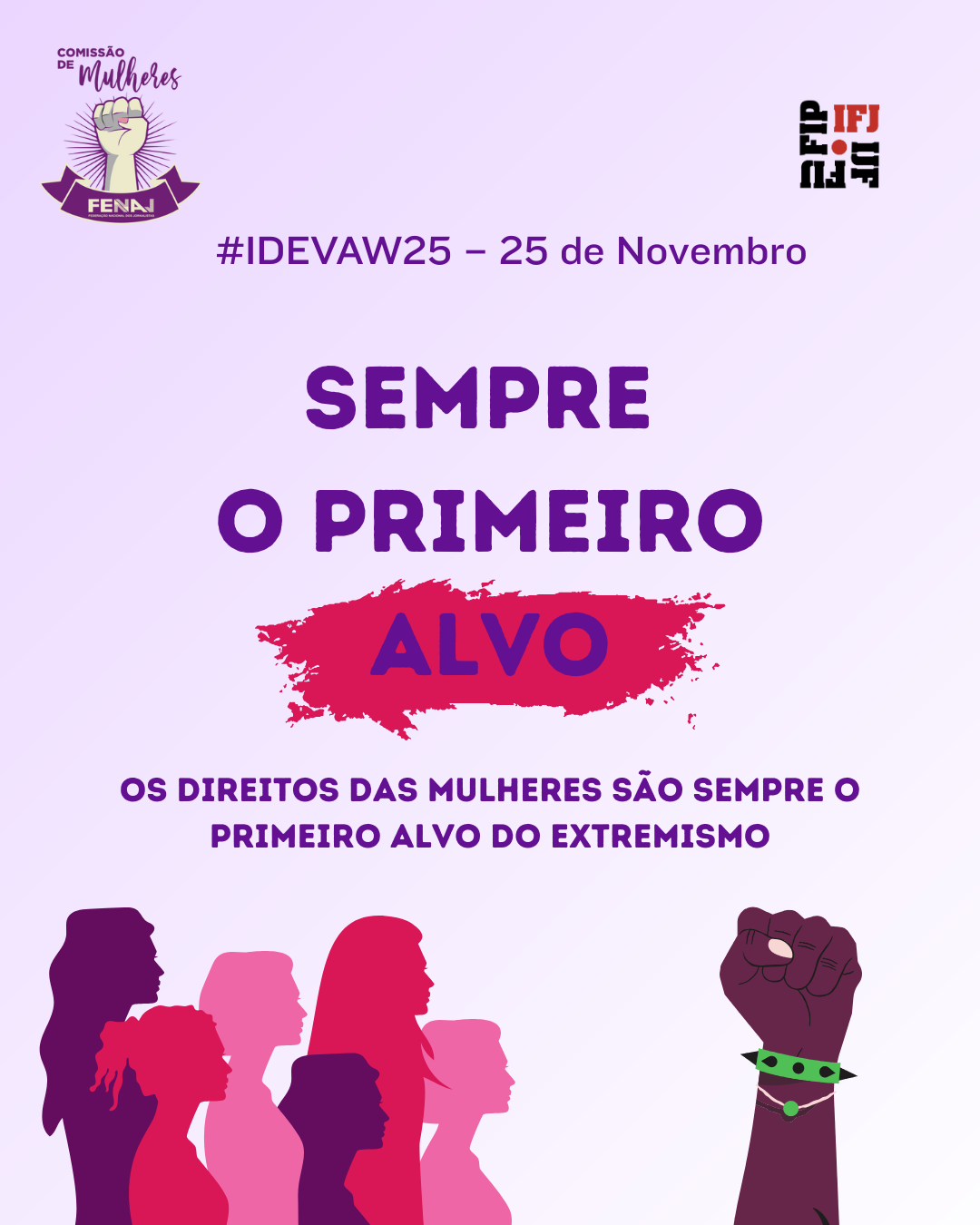 O secretário-geral da FIJ, Anthony Bellanger, acrescentou: “No dia 25 de novembro, a FIJ reafirma sua rejeição inequívoca a todas as formas de violência contra as mulheres. A igualdade de gênero é uma pauta sindical e não permitiremos que os direitos das mulheres sejam minados ou silenciados em nossos locais de trabalho e em nossa profissão.”