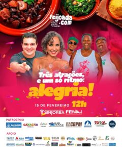 Em Salvador, o Sindicato dos Jornalistas da Bahia (Sinjorba) promove a Feijoada.Com, um evento especial que celebra os 40 anos do Axé Music. A festa acontece no dia 15 de fevereiro, a partir das 12h, no Camarote da Barra, e terá como atração principal a cantora e jornalista Carla Visi, ex-vocalista da Banda Cheiro de Amor. O evento reunirá jornalistas, radialistas, publicitários e demais trabalhadores da comunicação para um dia de música, reencontros e celebração da cultura baiana.