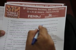 “Defender as liberdades de imprensa e de expressão, a comunicação pública, as políticas sociais, a Previdência, a saúde, a educação, a democracia e a justiça social” são pautas que norteiam a organização sindical dos jornalistas e finalizam a convocação de mobilização da categoria por meio da Carta de Fortaleza. O documento – posicionamento político da Federação Nacional dos Jornalistas (FENAJ) e que reúne as principais diretrizes dos debates conjunturais – foi referendado pelos 62 delegados reunidos no 38º Congresso Nacional dos Jornalistas, encerrado no dia 24 de agosto, na Capital cearense.