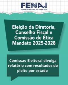 A Comissão Eleitoral Nacional responsável pelos trabalhos da eleição da Federação Nacional dos Jornalistas (FENAJ), que elegeu a nova direção e a Comissão de Ética para o triênio 2025-2028, fechou na noite desta quinta (17/07) o relatório com todos os números do pleito.