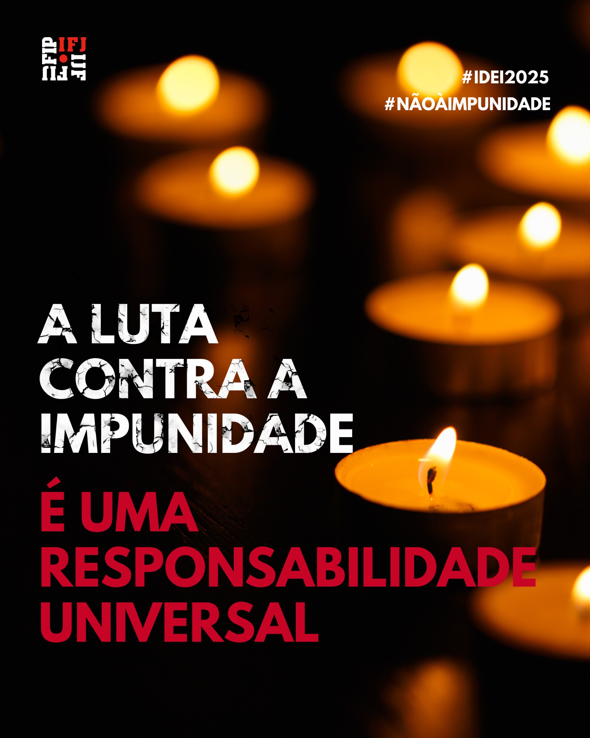 Compartilhe a mensagem de que a impunidade para ataques e assassinatos de jornalistas é inaceitável, com as hashtags #EndImpunity #IDEI2025 e marque @IFJGlobal .