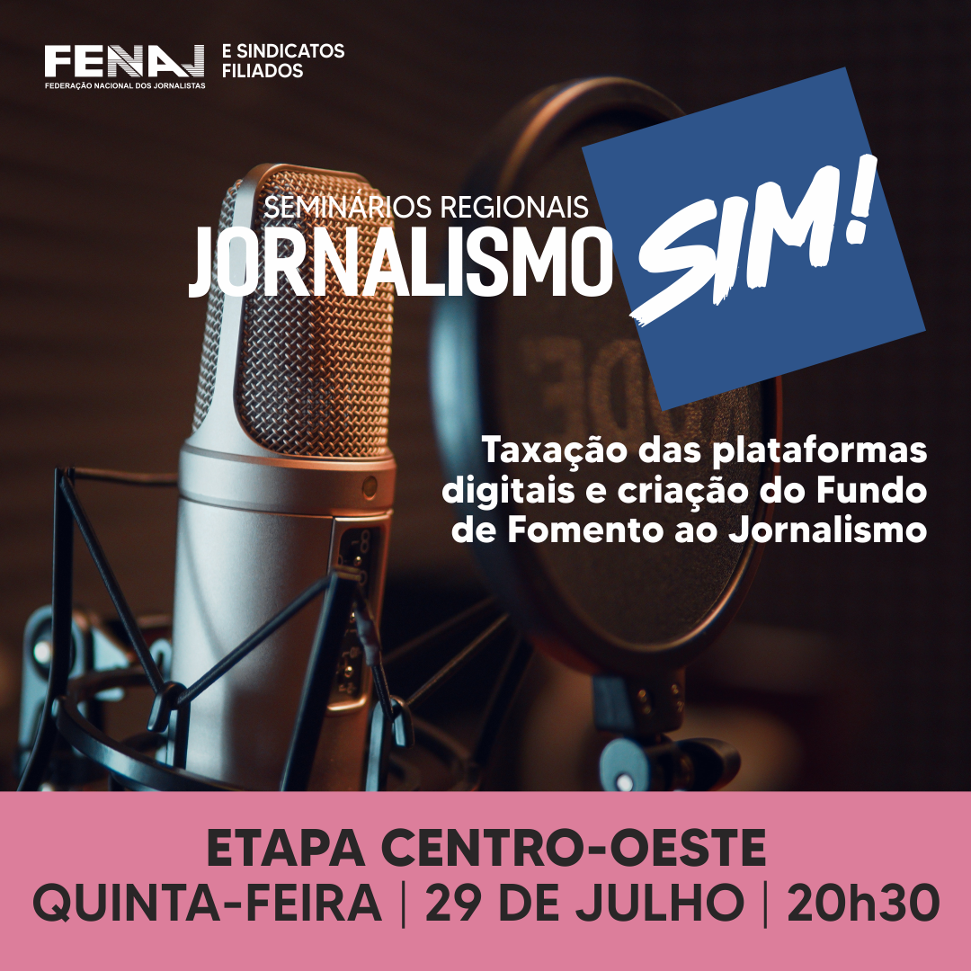 Mais uma etapa dos seminários regionais “Jornalismo, sim!” ocorre na próxima quinta-feira (29/07), a partir das 20h30 (horário de Brasília, 19h30 em Mato Grosso e Mato Grosso do Sul), reunindo jornalistas que atuam nos estados do Centro-Oeste. A série de eventos on-line é uma iniciativa da Federação Nacional dos Jornalistas (FENAJ), com apoio da Union to Union e da Federação Internacional dos Jornalistas (FIJ).