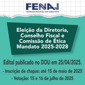 A Federação Nacional dos Jornalistas (FENAJ) publicou o edital de convocação para as eleições que definirão a nova Diretoria, o Conselho Fiscal e a Comissão Nacional de Ética da entidade para o triênio 2025-2028. O pleito será realizado de forma eletrônica nos dias 15 e 16 de julho de 2025, em todo o território nacional.