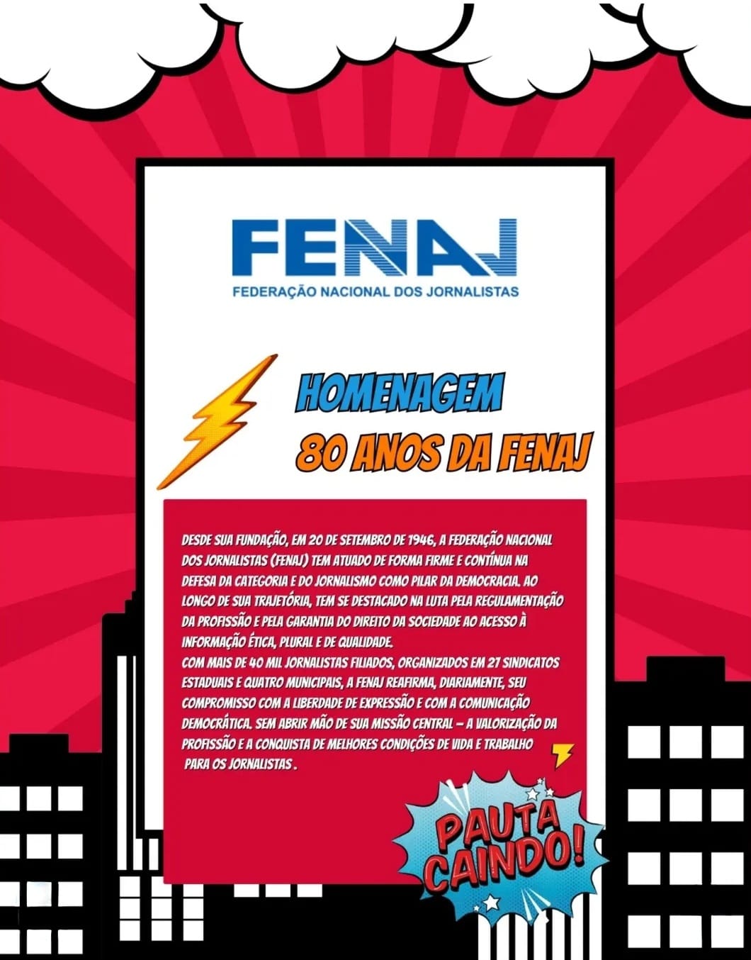 Ao completar oito décadas de atuação, a FENAJ será celebrada como uma entidade essencial para a organização da categoria e para a consolidação do jornalismo como pilar da democracia.