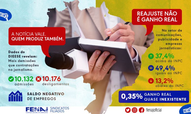 Para a FENAJ, os números confirmam um quadro de fragilidade no setor, em que a redução de postos formais se combina com reajustes modestos e dificuldade de valorização salarial. Mesmo em comparação com o cenário mais amplo do mercado de trabalho, o jornalismo segue convivendo com vínculos instáveis, aumento da sobrecarga, multifunção e formas precárias de contratação.
