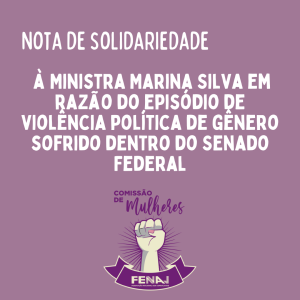 A Comissão de Mulheres da Federação Nacional de Jornalistas (FENAJ) vem a público manifestar sua solidariedade à Marina Silva, mulher negra, de luta, Amazônida, que tem uma longa trajetória na defesa do Meio Ambiente e que hoje ocupa o cargo de Ministra do Meio Ambiente, por conta do episódio de violência política de gênero sofrido durante audiência na Comissão de Infraestrutura do Senado Federal, na última terça-feira, 27.
