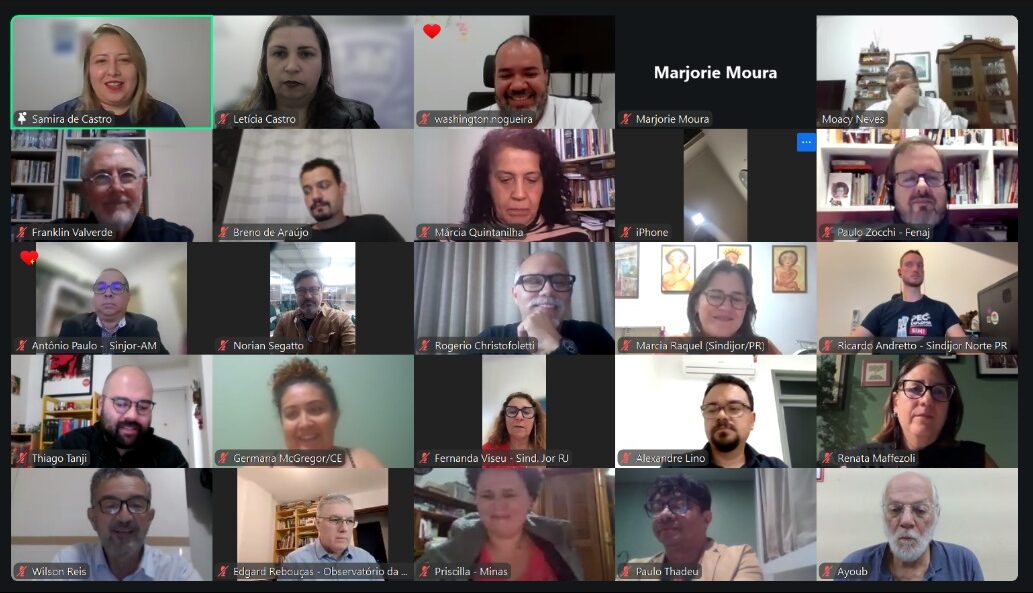 A Federação Nacional dos Jornalistas (FENAJ) realizou ontem (18/08) a cerimônia de posse da sua nova diretoria, Conselho Fiscal e Comissão Nacional de Ética para o triênio 2025-2028. O evento aconteceu em formato online, com transmissão pelo canal da entidade no YouTube, e marcou a recondução da jornalista cearense Samira de Castro à presidência da Federação. A posse virtual foi conduzida pelo presidente da Comissão Eleitoral Nacional, Paulo Zocchi, que nominou todos os empossados em seus respectivos cargos.