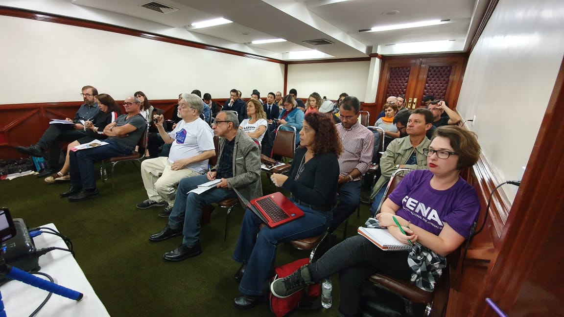 A abertura do encontro foi conduzida pelo vice-presidente da FENAJ, Paulo Zocchi, e pela representante da FIJ, Belén Wildner, que situaram a realização do evento, que tem a participação da direção da FENAJ, como espaço para debate e articulação de estratégias e ações num cenário adverso para a classe trabalhadora e para o país. Para Zocchi, a precarização da profissão de jornalista foi agravada a partir do golpe de 2016, com os governos Temer e Bolsonaro. O diretor lembra que a MP 905/2019 aprofunda os ataques aos direitos trabalhistas e extingue o registro profissional dos jornalistas.
