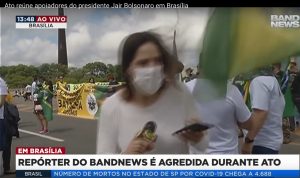 Nesse domingo, mais uma vez, uma jornalista, da TV Band, foi agredida por uma seguidora de Jair Bolsonaro com mastro de uma bandeira em mais uma manifestação da extrema-direita contra a democracia.