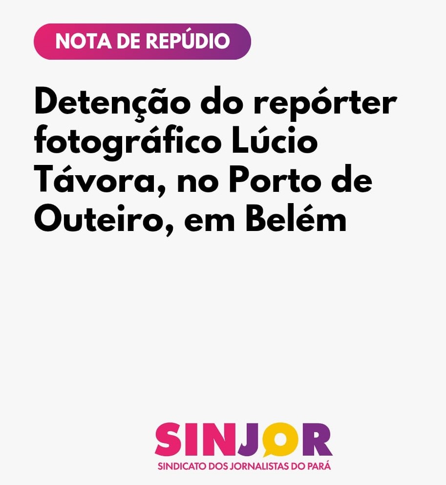 O Sindicato de Jornalistas no Estado do Pará (SINJOR-PA) repudia a detenção do repórter fotográfico Lúcio Távora, no Porto de Outeiro, em Belém, na manhã desta quarta-feira (27), durante cobertura fotográfica, a serviço de uma agência internacional da China, sobre as obras para a COP30.
