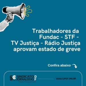 Os jornalistas e radialistas que prestam serviços pela Fundac no Supremo Tribunal Federal (STF), incluindo TV Justiça e Rádio Justiça, aprovaram, por unanimidade, nesta segunda-feira (21), o estado de greve da categoria. A decisão, tomada em assembleia geral unificada, ocorre em meio a uma série de denúncias de irregularidades, que variam desde a ausência de recolhimento do FGTS dos trabalhadores e das trabalhadoras, parcelamento de auxílio-alimentação, atraso ou não pagamento de férias e atraso no pagamento de contrato de prestação de serviços por Pessoas Jurídicas (PJs). A situação abrange tanto jornalistas quanto técnicos radialistas e vem sendo acompanhados de perto pelas entidades sindicais das duas categorias, que buscam gestores da Fundac para regularizar a situação.
